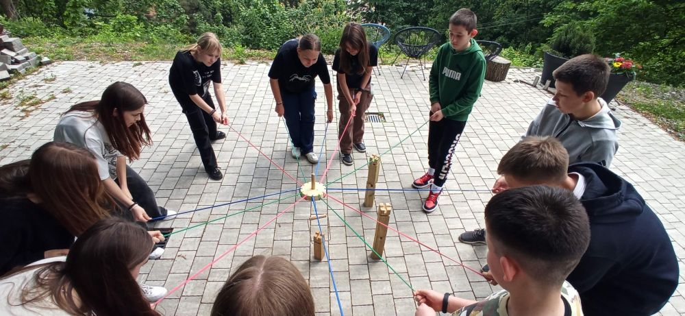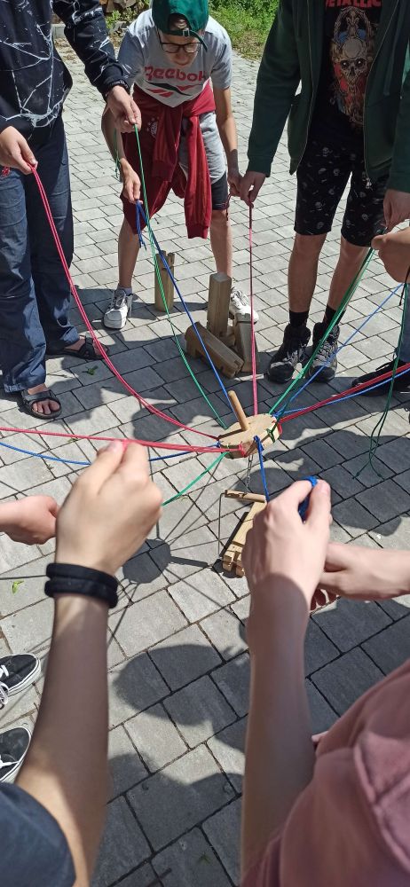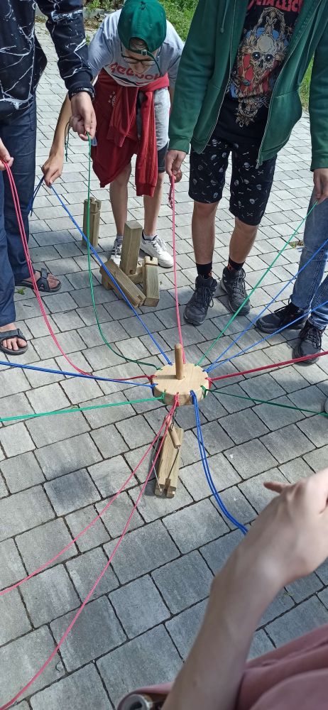 Pole zabaw teambuildingowych — „ucieczka z mokradeł”, „wieża mocy”, „latający dywan” i inne zadania zespołowe.